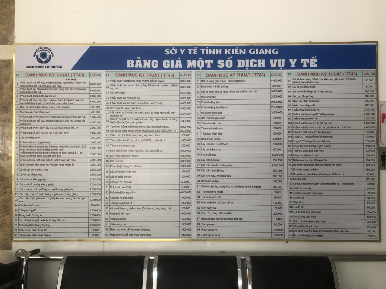 Bảng giá một số dịch vụ y tế tại Bệnh viện Mắt Nguyễn Hùng Posted on 17 Tháng Mười Hai, 202317 Tháng Mười Hai, 2023 by Bệnh viện mắt Nguyễn Hùng