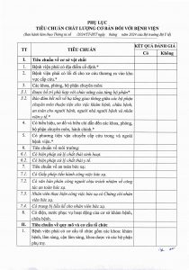 Bộ Y tế Quy định Tiêu chuẩn chất lượng cơ bản đối với bệnh viện năm 2024 Posted on 13 Tháng Năm, 202515 Tháng Năm, 2025 by Bệnh viện mắt Nguyễn Hùng Bài viết liên quan Bệnh viện Mắt Nguyễn Hùng triển khai bệnh án điện tử Th9 11, 2025 Kế hoạch kiểm tra công tác đảm bảo an tòa sinh học tại phòng xét nghiệm và đánh giá, công bố mức chất lượng phòng xét nghiệm năm 2024-2025 Th5 15, 2025 Sở Y tế ra Kế hoạch Kiểm tra, đánh giá chất lượng bệnh viện và khảo sát hài lòng người bệnh, nhân viên y tế năm 2024-2025 Th5 15, 2025